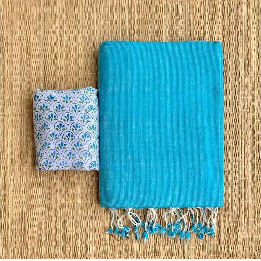 SURPASSING TURQUOISE COLOUR TRADITIONAL LOOKING CHANDERI COTTON SAREE
