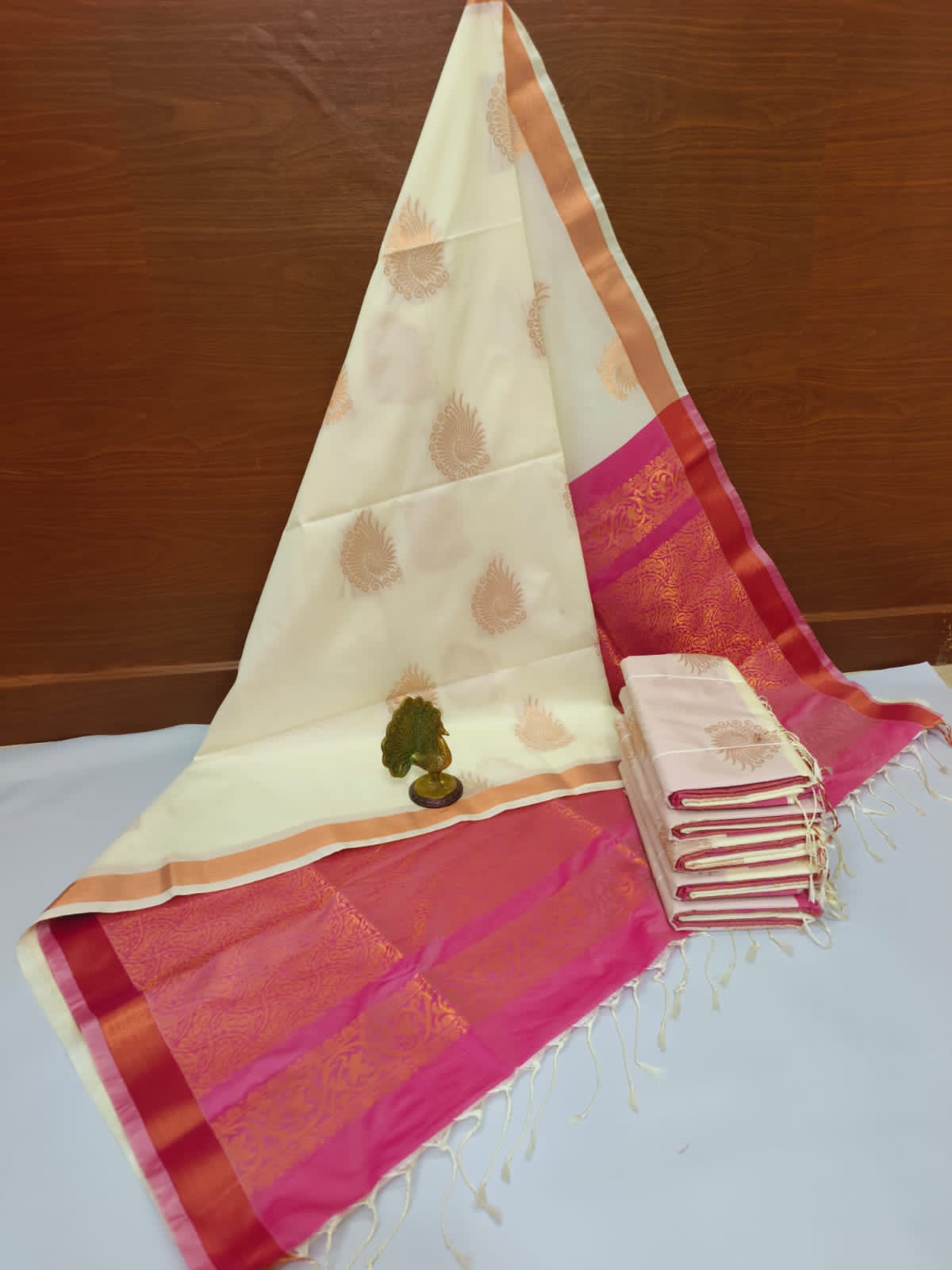 Cream and Pink Color Kanjivaram Silk Sarees KS -14