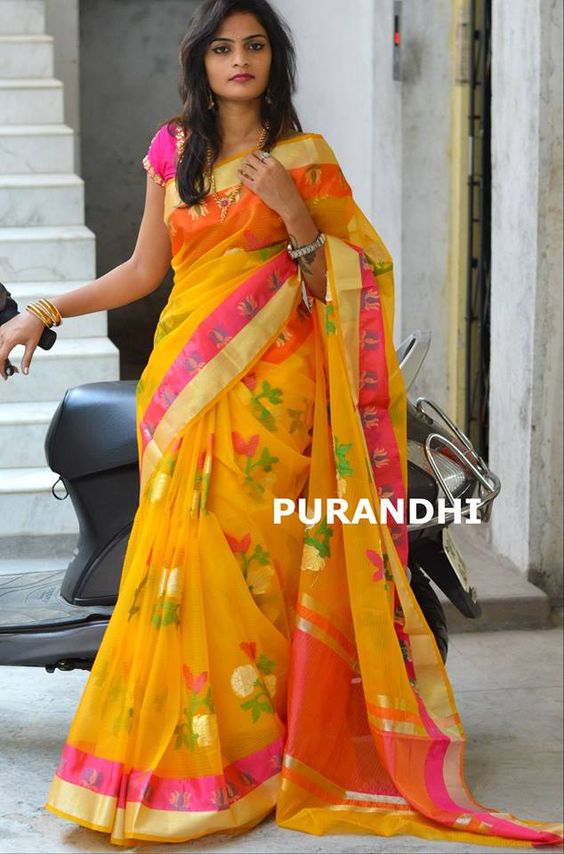 New Look Orange Colored Women Silk Saree With Blouse DS-1056