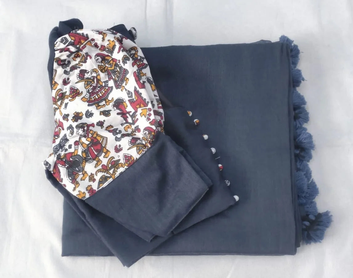 ATTRACTIVE GREY,WHITE COLOUR TRADITIONAL LOOKING SOFT KHADI COTTON SAREE 14