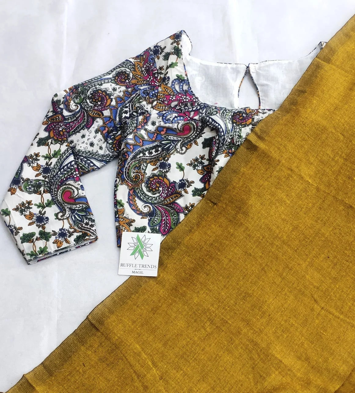 ATTRACTIVE MUSTARD,WHITE COLOUR TRADITIONAL LOOKING SOFT KHADI COTTON SAREE KALAMKARI BLOUSE 5