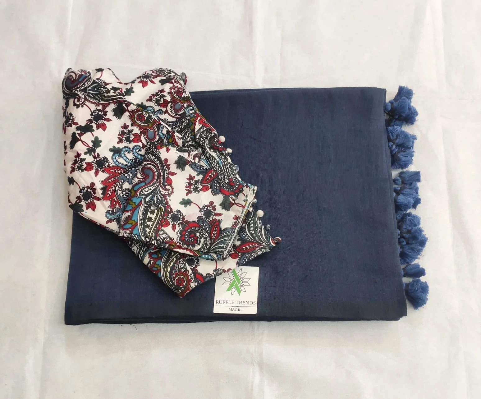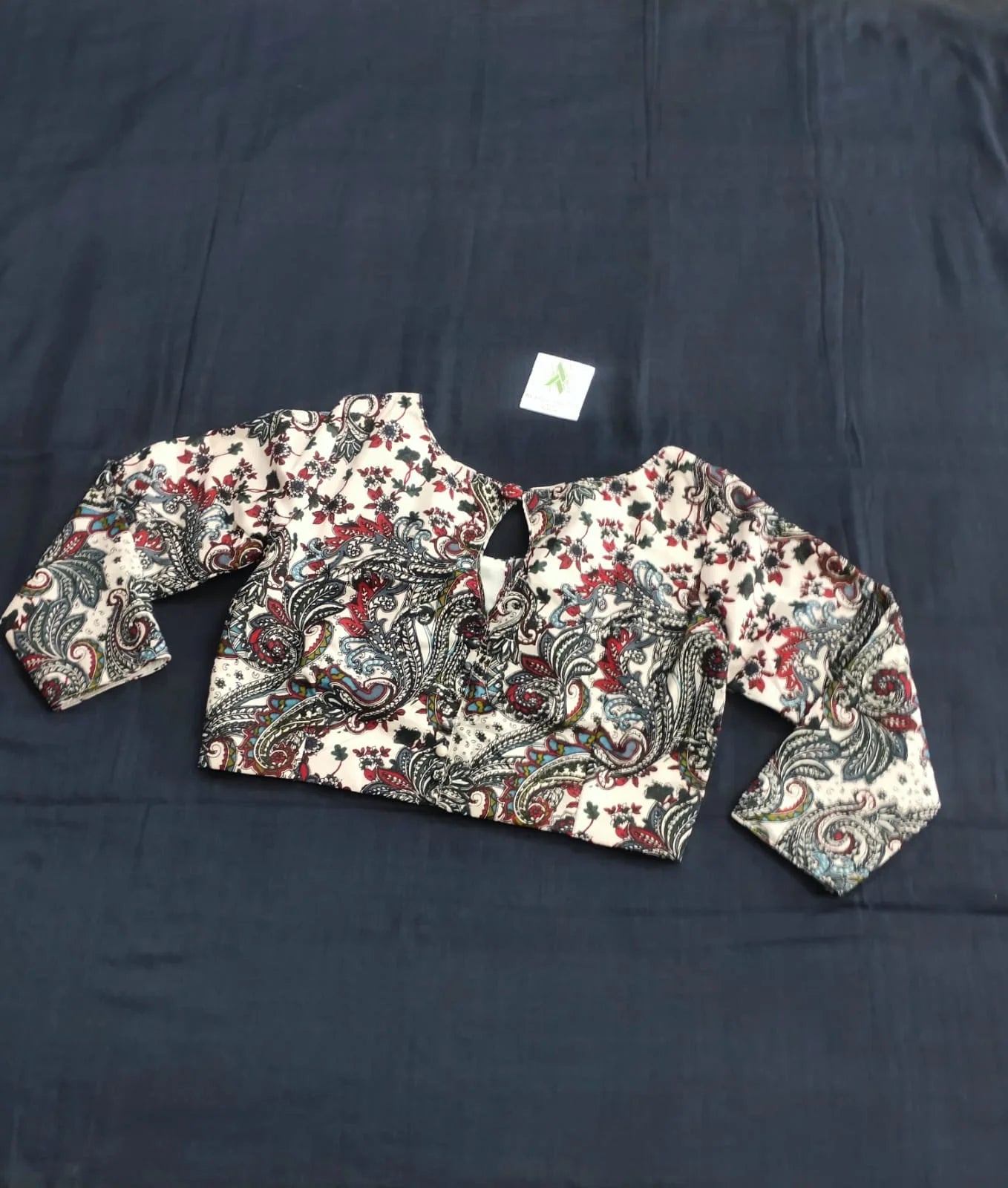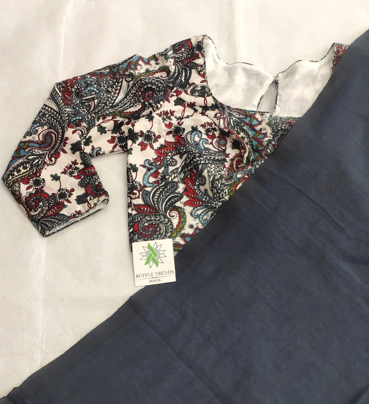 ATTRACTIVE GREY,WHITE COLOUR TRADITIONAL LOOKING SOFT KHADI COTTON SAREE KALAMKARI BLOUSE 4