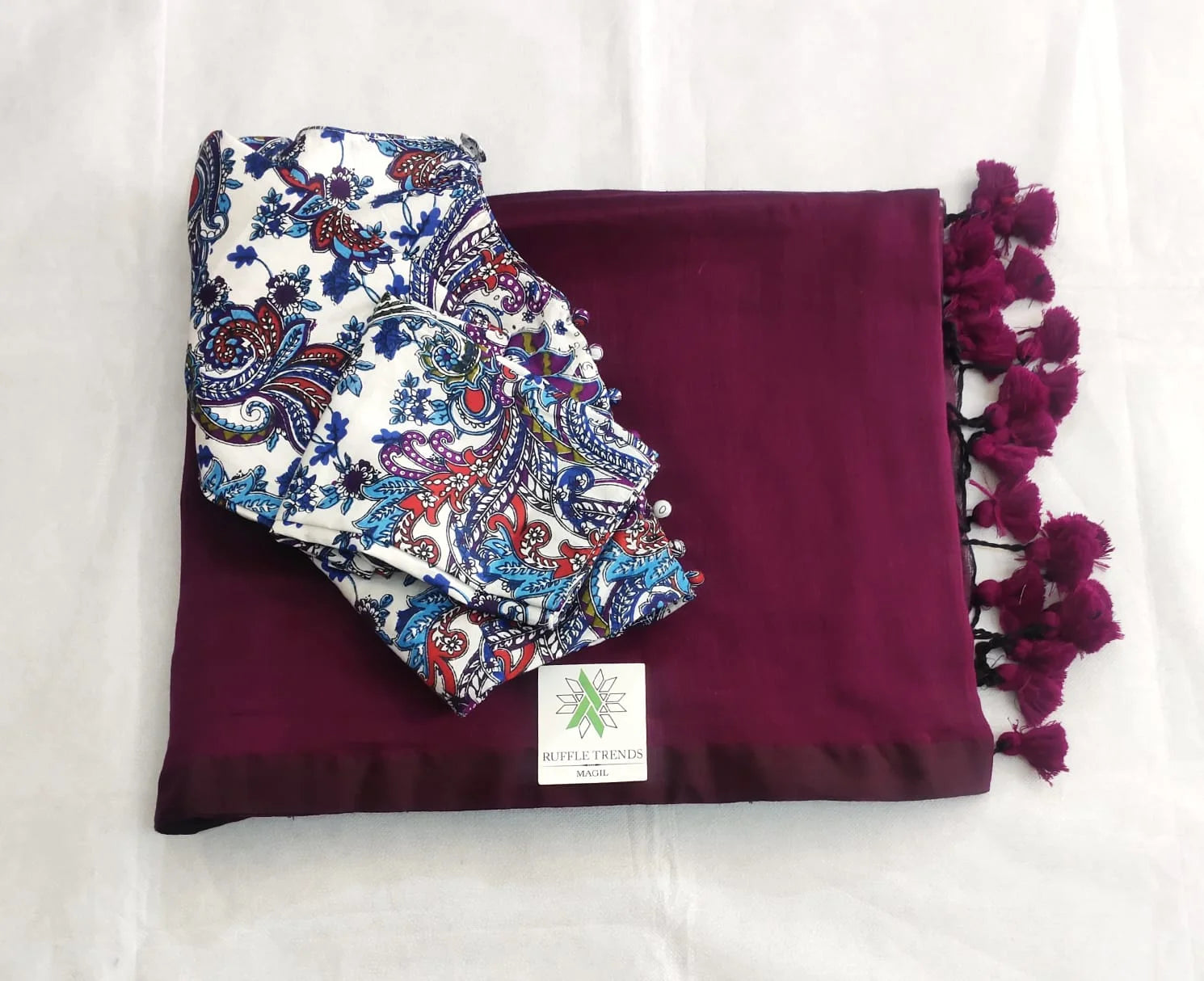 ATTRACTIVE WINE,WHITE COLOUR TRADITIONAL LOOKING SOFT KHADI COTTON SAREE KALAMKARI BLOUSE 6
