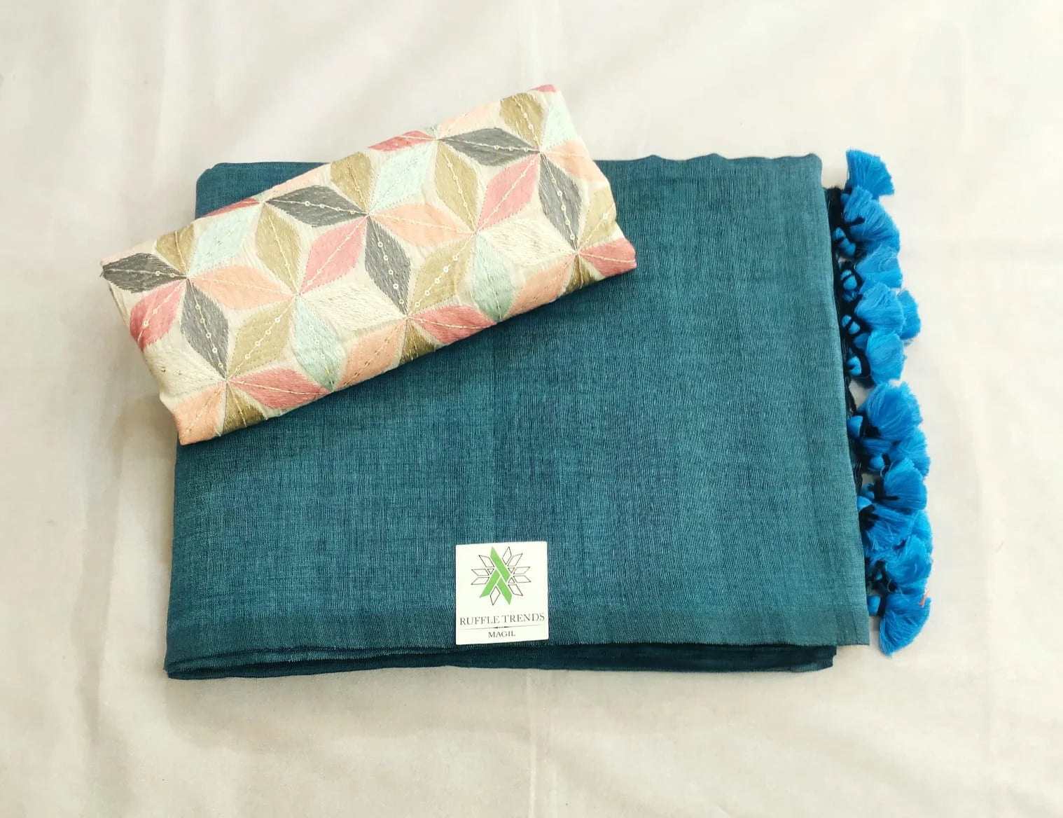 Beautiful Teal blue Color Plain Saree with Designer Blouse 11