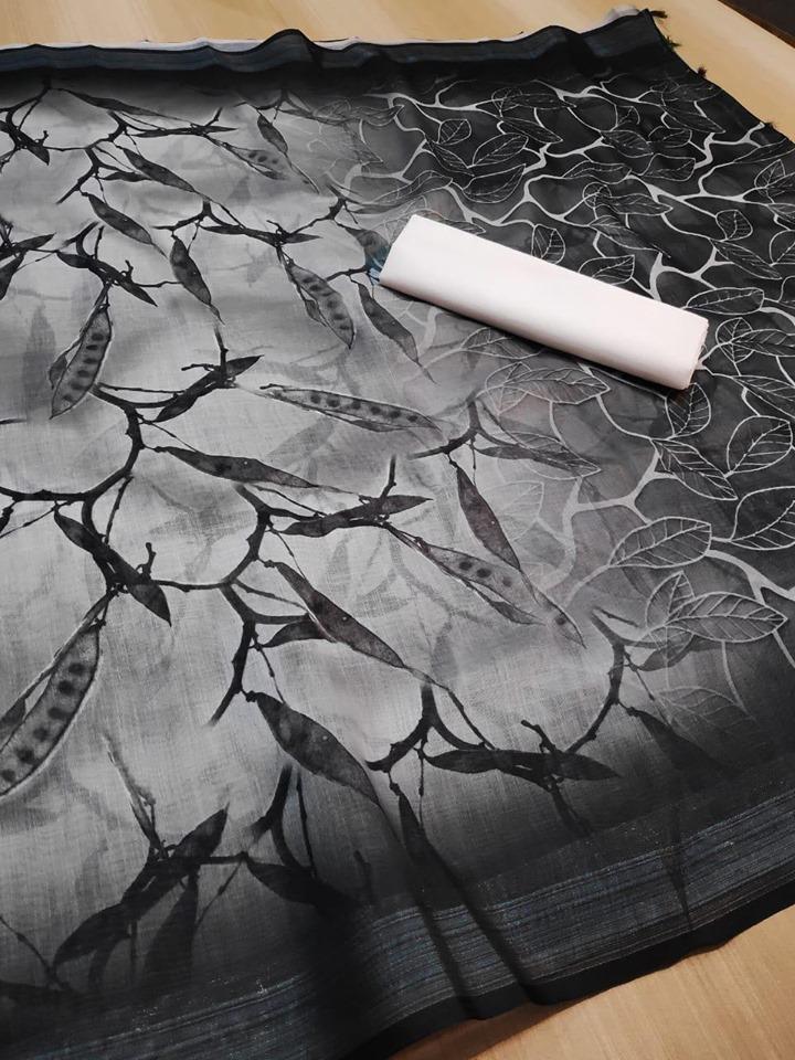 CLASSY Black Color Linen Digital Printed Saree LS-213