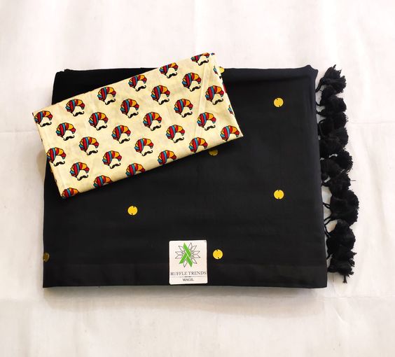 BLACK.OFF WHITE COLOUR TRADITIONAL LOOKING CHANDERI COTTON SAREE